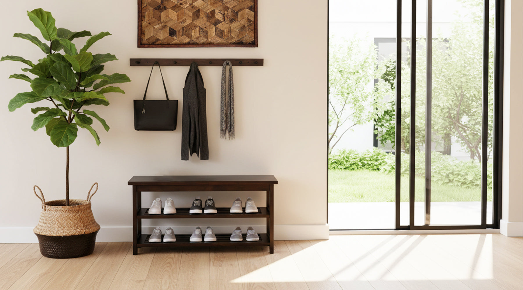 View full detailsAmple Storage: USA-grown hickory hardwood shoe bench with a spacious top and bottom shelf, ideal for quick shoe organization and access. Durabilit...